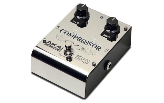 Akai Pro Compressor, ağır-kasa, paslanmaz-çelik gövdeye sahip, üç-boyutlu bir kontrol sağlar. True-bypass butonuna, Level ve Sensitivity knob larına sahiptir.